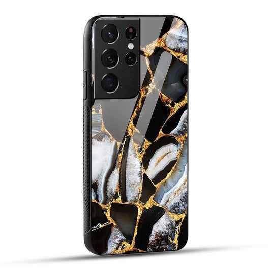 Samsung Galaxy S21 Ultra 5G Back Cover Golden Marble Printed Glass Case
