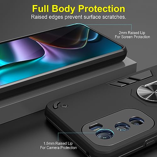 Moto Edge 30 Back Cover, Premium Motorola Edge 30 Back Cover, Sleek Moto Edge 30 Back Case 360 Degree Full Protection with Ring Holder Kickstand