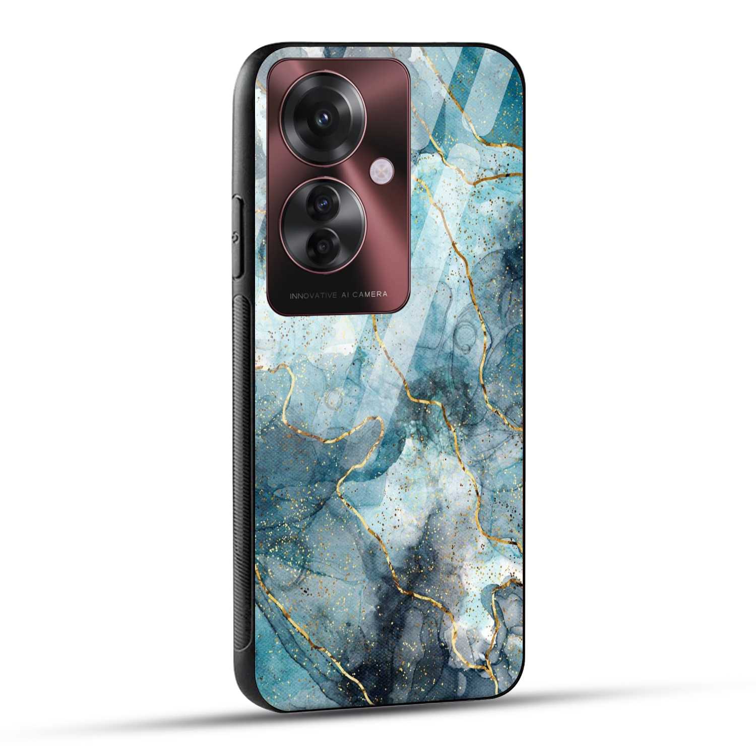 OPPO F25 PRO 5G Back Cover Blue Gold Illustrated Marble Printed Glass Case