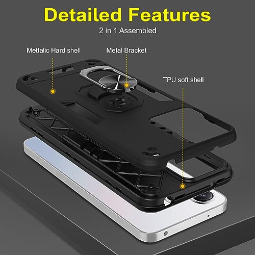 Redmi 12 5G Back Cover, Poco M6 Pro 5G Back Cover, Redmi 12 4G Back Cover 360 Degree Full Protection with Ring Holder Kickstand