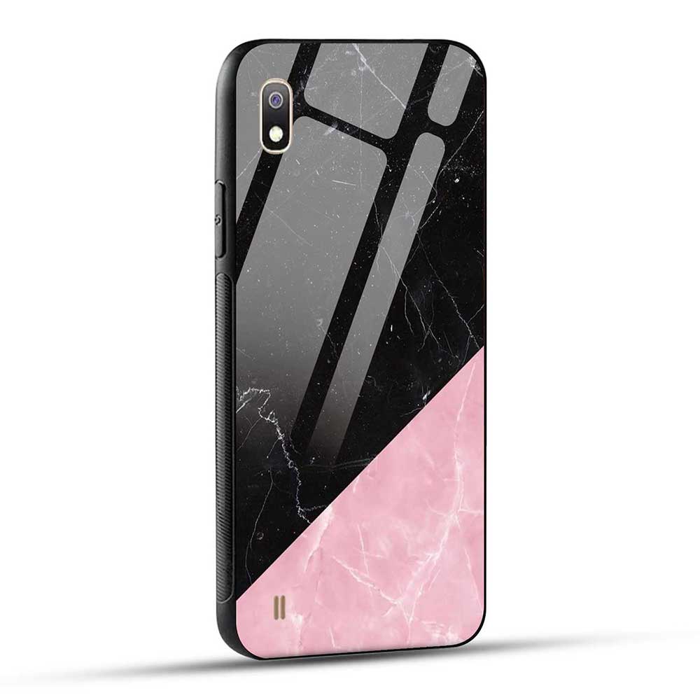 Samsung Galaxy A10 Back Cover Pink Black Marble Glass Case