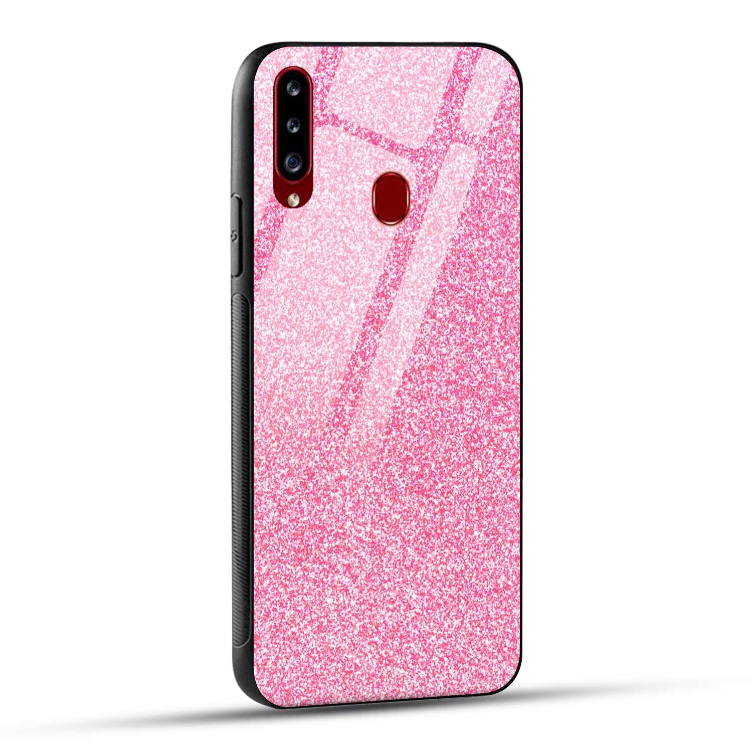 Samsung Galaxy A20s Back Cover Pink Glitter Printed Glass Case
