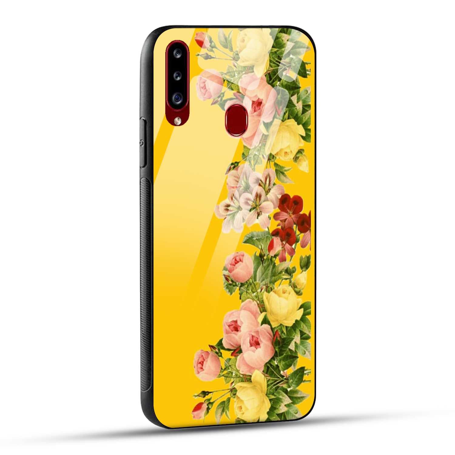 Samsung Galaxy A20s Back Cover Yellow Flowers Printed Glass Case
