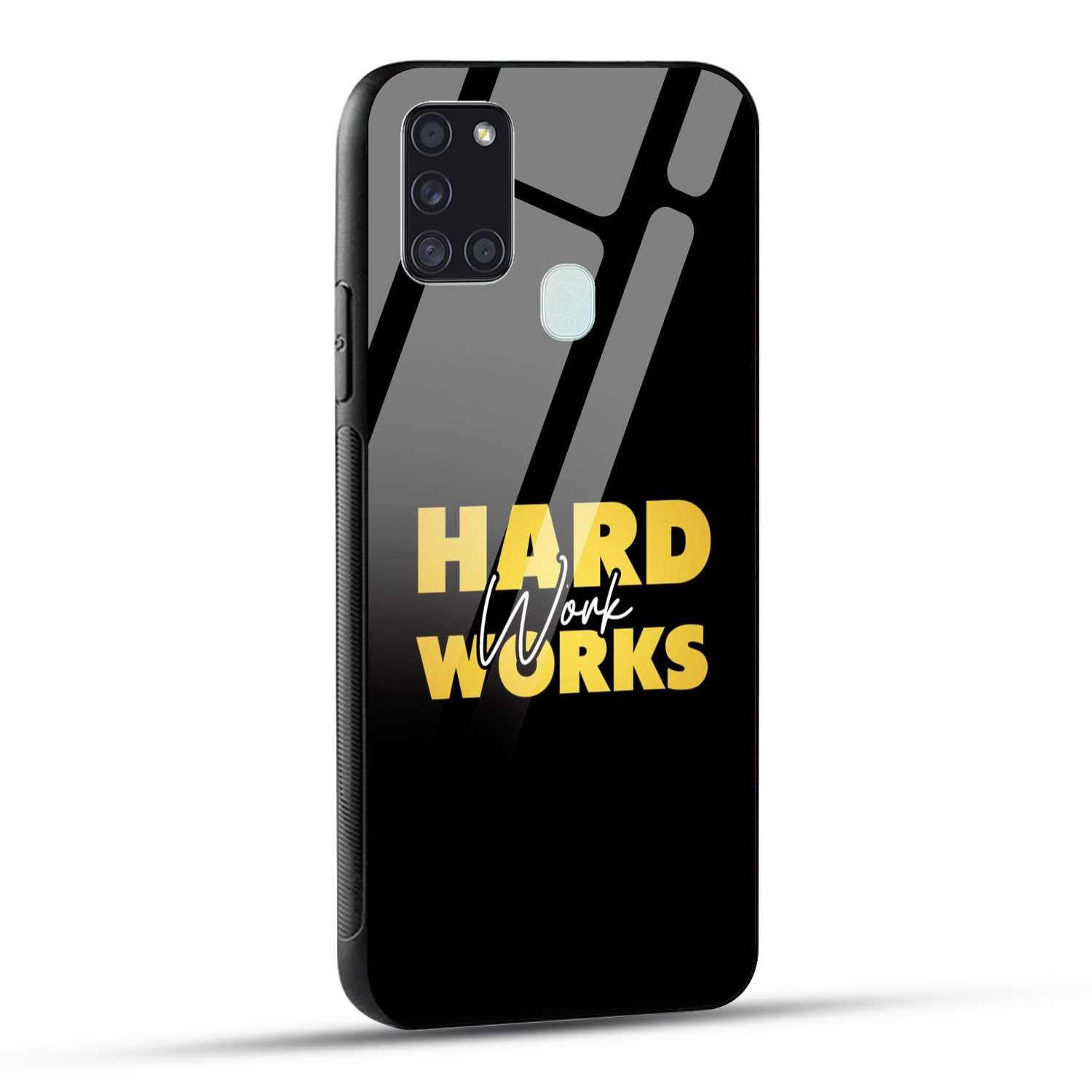 Samsung Galaxy A21s Back Cover Hard Work Works Empowerment Quote Printed Glass Case