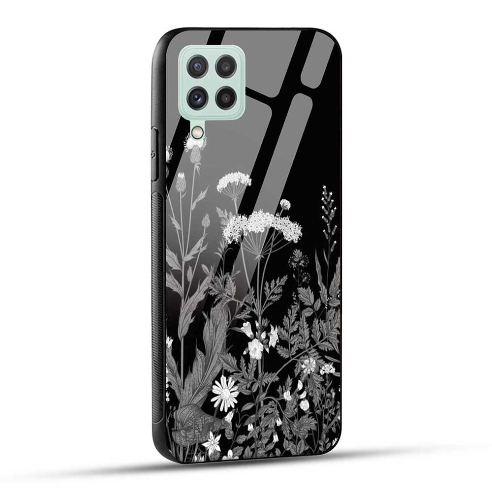 Samsung Galaxy A22 4G Back Cover Black & White Flowers Glass Case