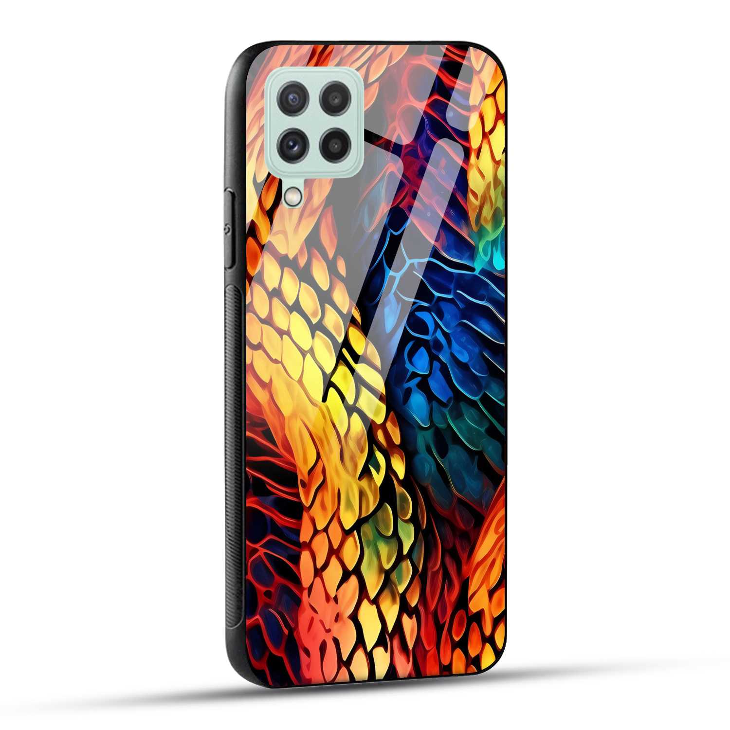 Samsung Galaxy A22 4G Back Cover Colorburst Jungle Rainbow Animal Spots Printed Glass Case