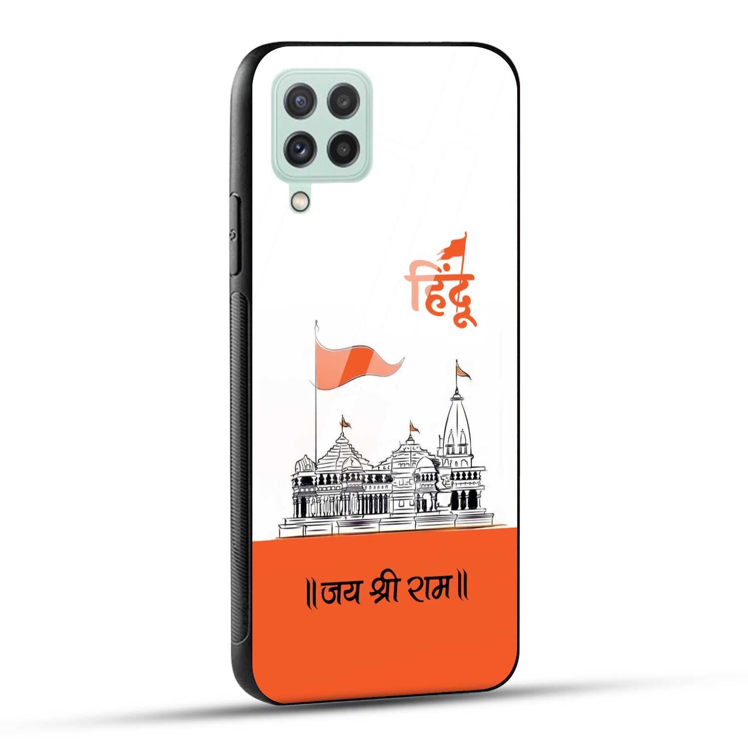Samsung Galaxy A22 4G Back Cover Jai Shree Ram Mandir Art Printed Glass Case