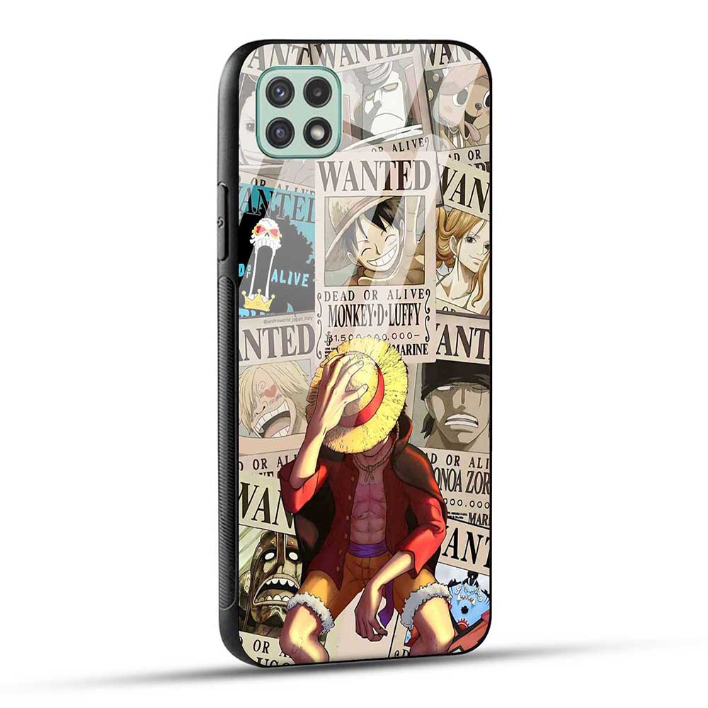Samsung Galaxy A22 5G / F42 5G Back Cover Anime One Piece Wanted Luffy Glass Case