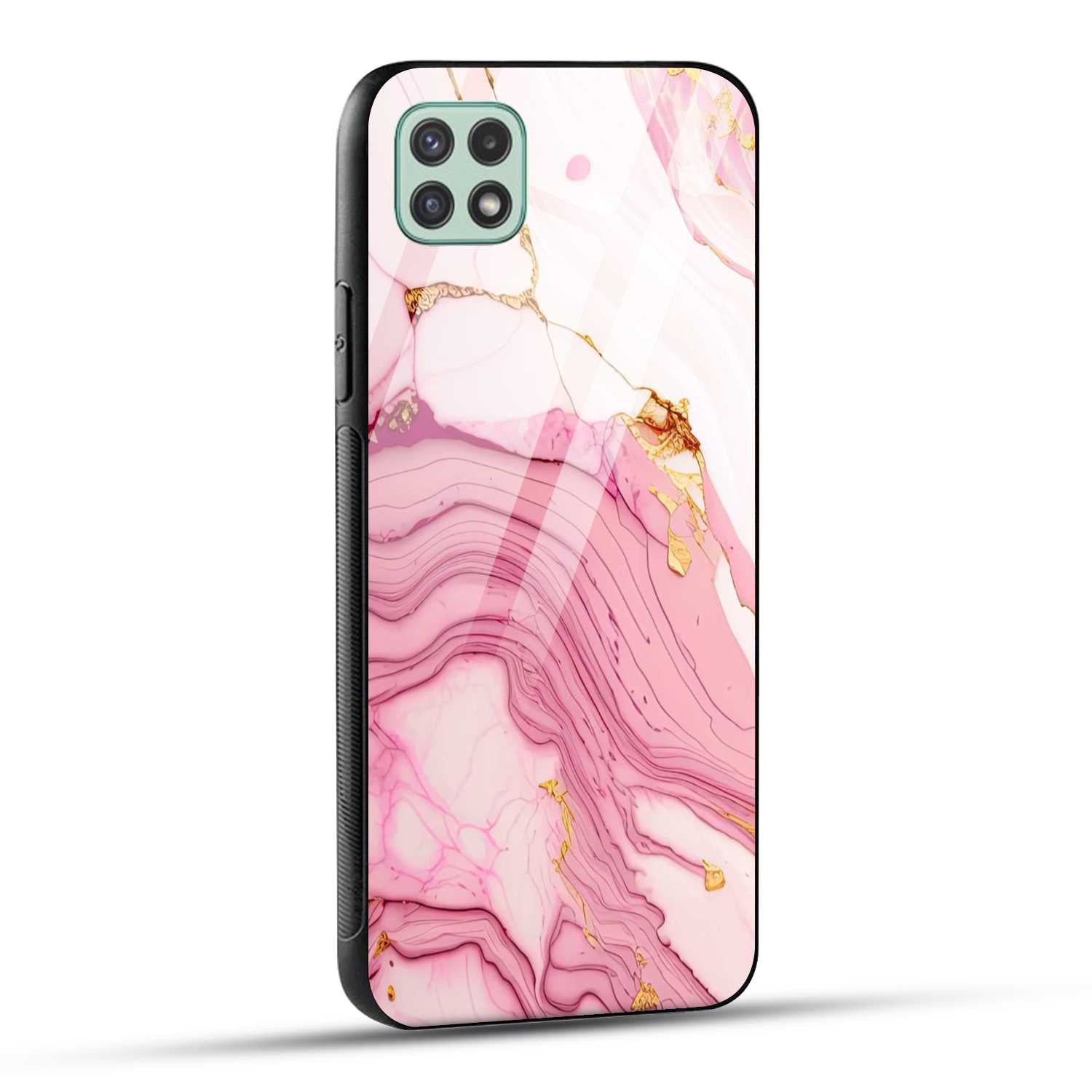 Samsung Galaxy A22 5G Back Cover Pink Marble Printed Glass Case