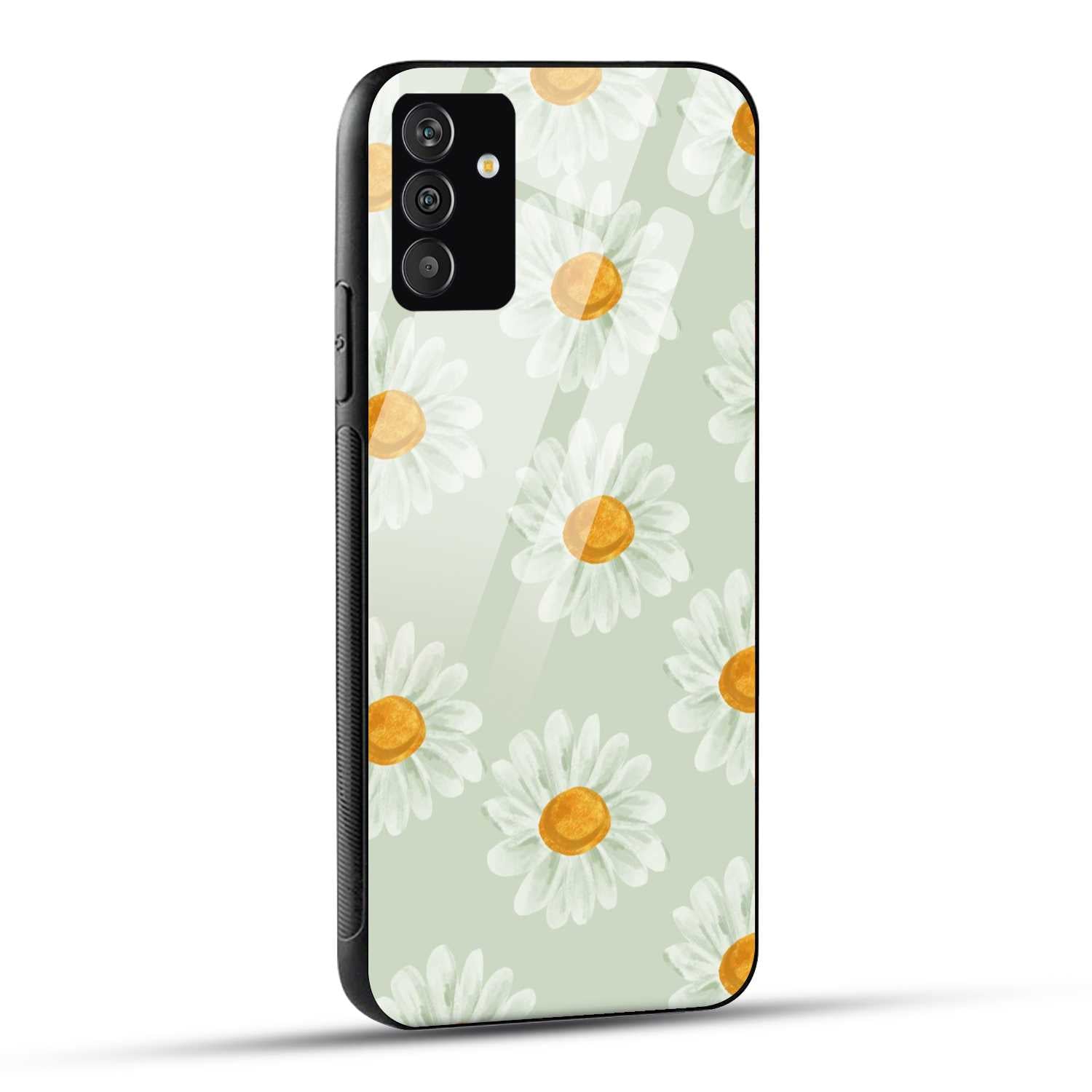 Samsung Galaxy A25 5G Back Cover Green Geometric Daisy Printed Glass Case