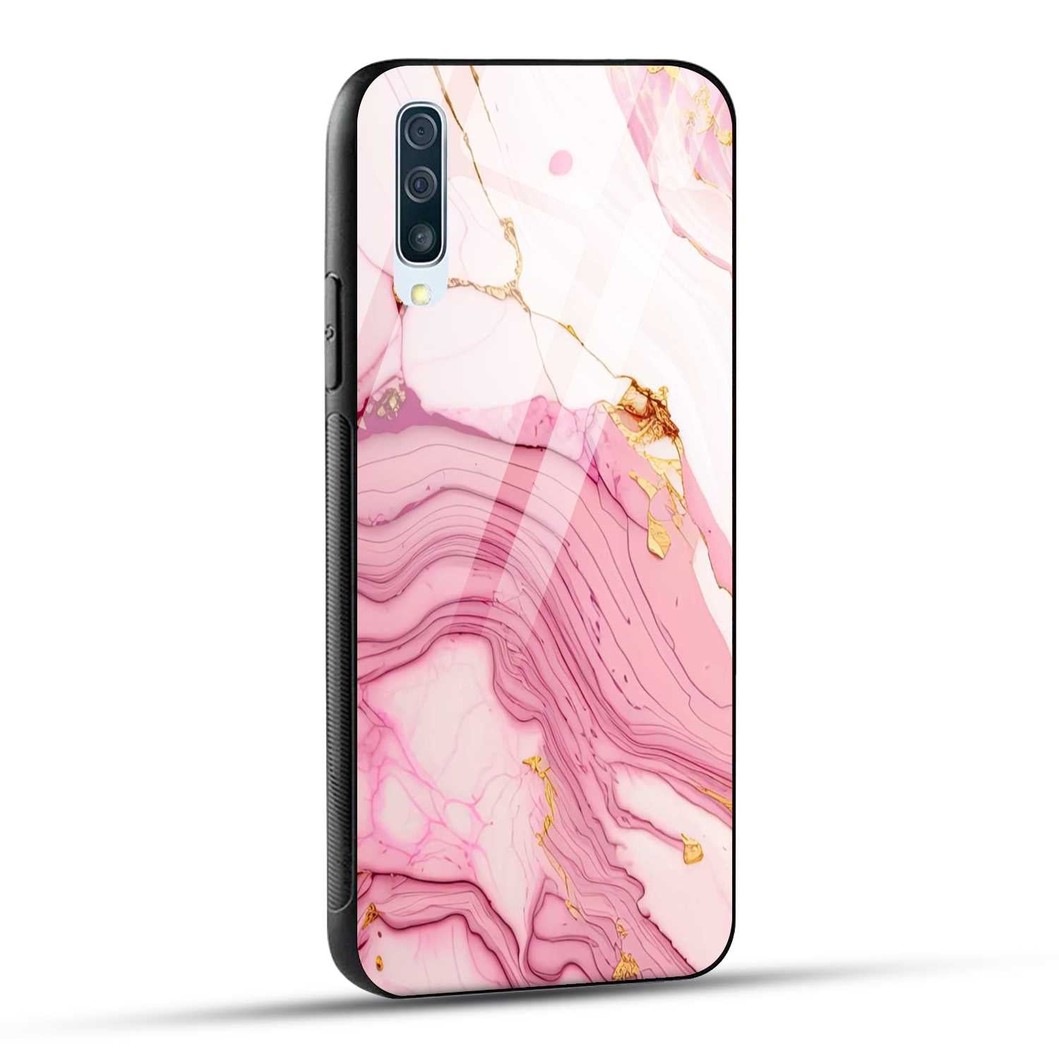 Samsung Galaxy A50 Back Cover Pink Marble Printed Glass Case