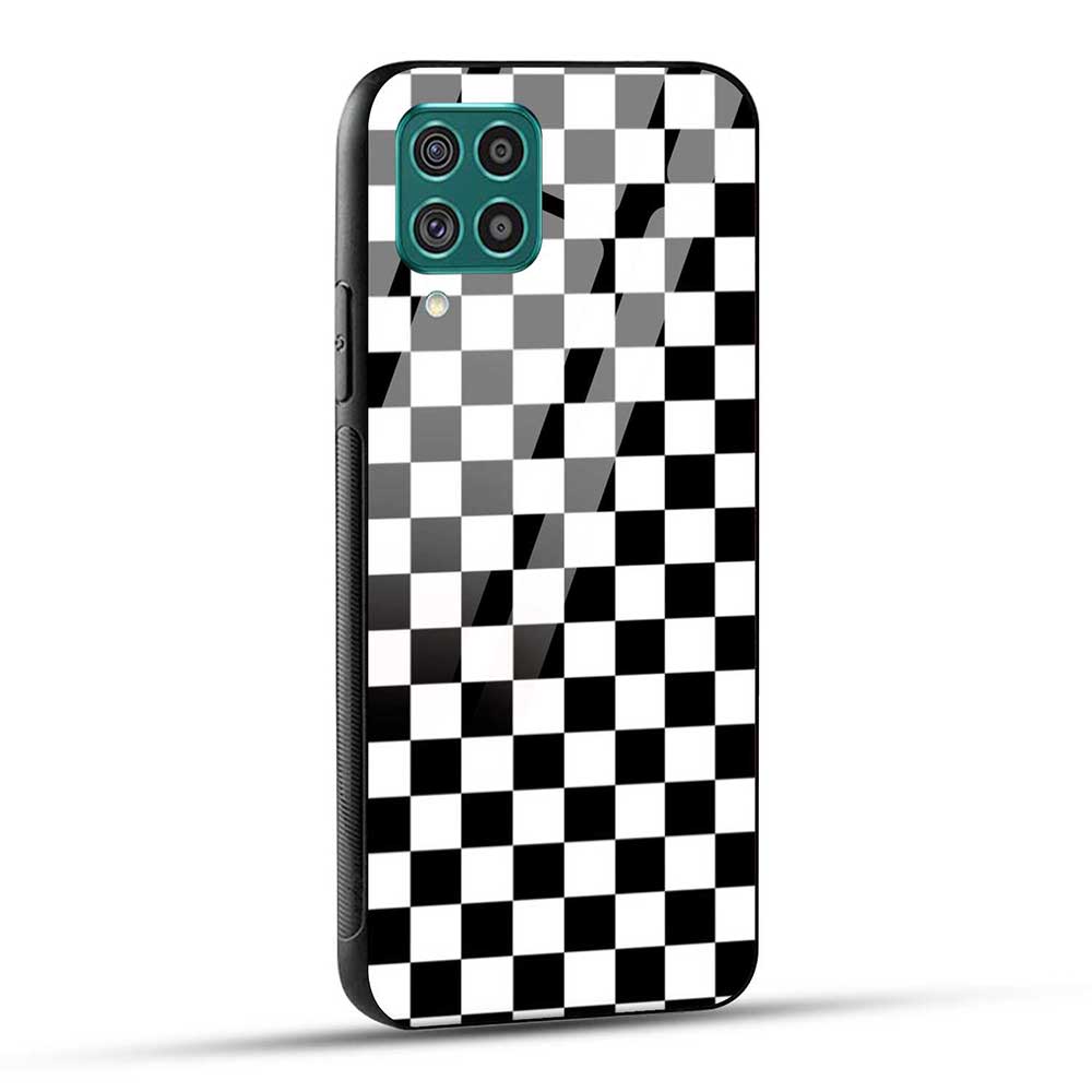 Samsung Galaxy F62 Back Cover Black and White Color Blocks Glass Case