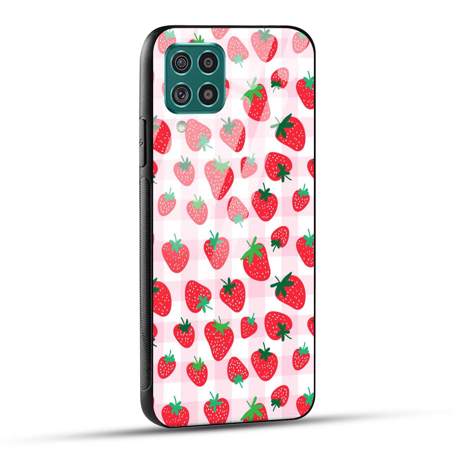 Samsung Galaxy F62 Back Cover Doodle Of Strawberries Printed Glass Case