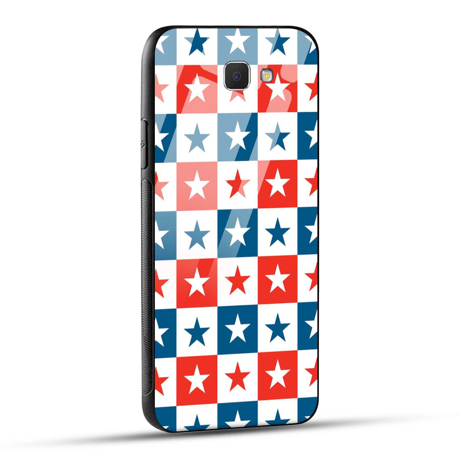 Samsung Galaxy J5 Prime Back Cover Blue And Red Star Print Printed Glass Case