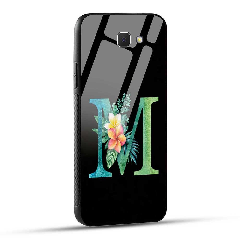 Samsung Galaxy J5 Prime Back Cover M Alphabet Green Floral Name Initial Letter Glass Case