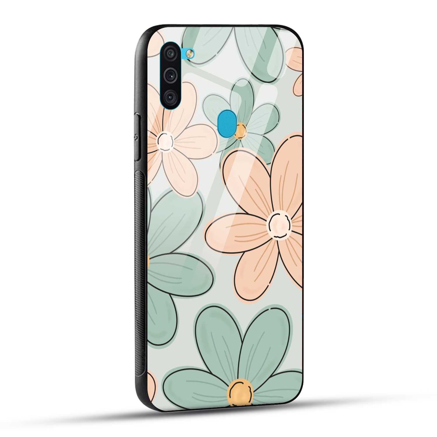 Samsung Galaxy M11 Back Cover Aesthetic Flower Printed Glass Case