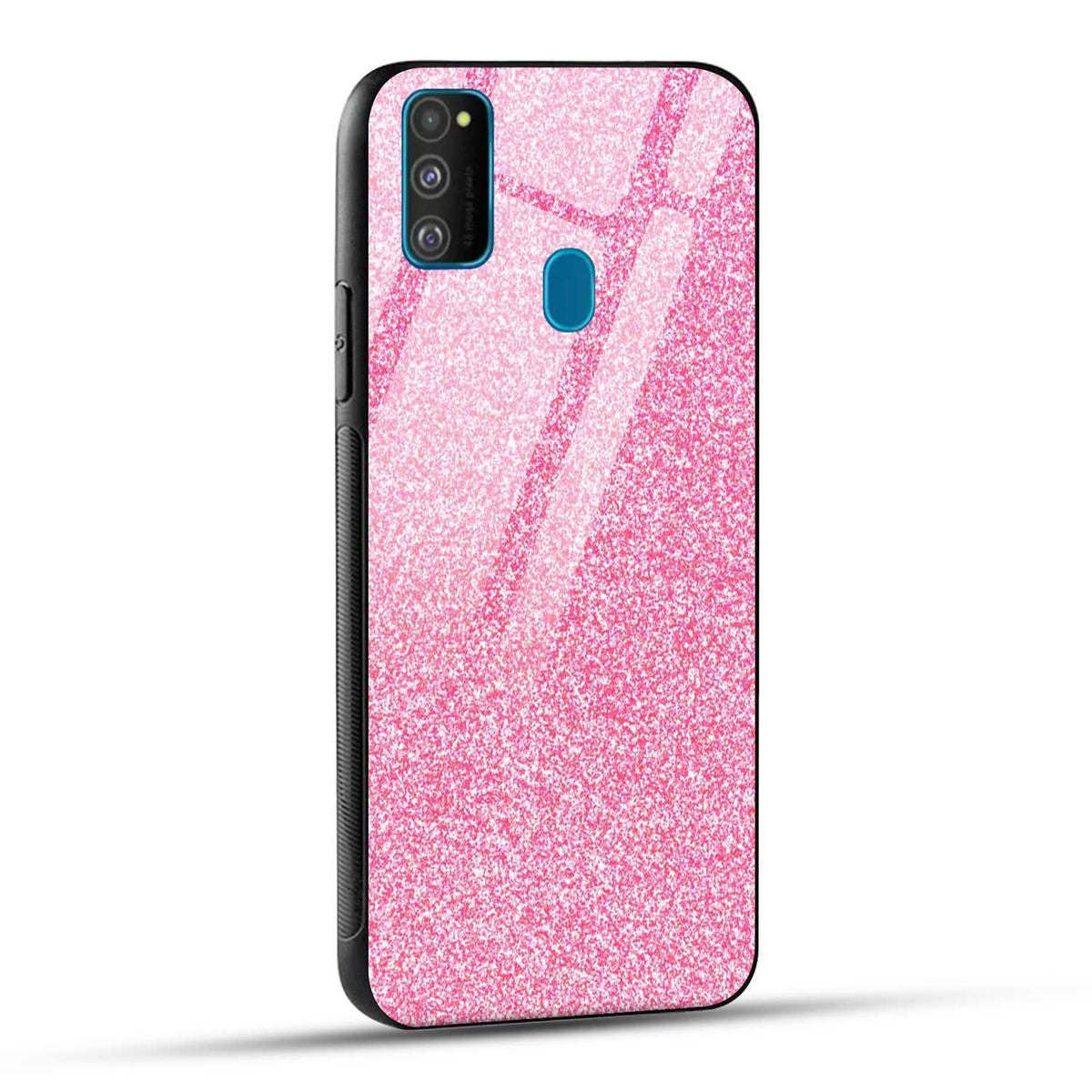 Samsung Galaxy M30s Back Cover Pink Glitter Printed Glass Case
