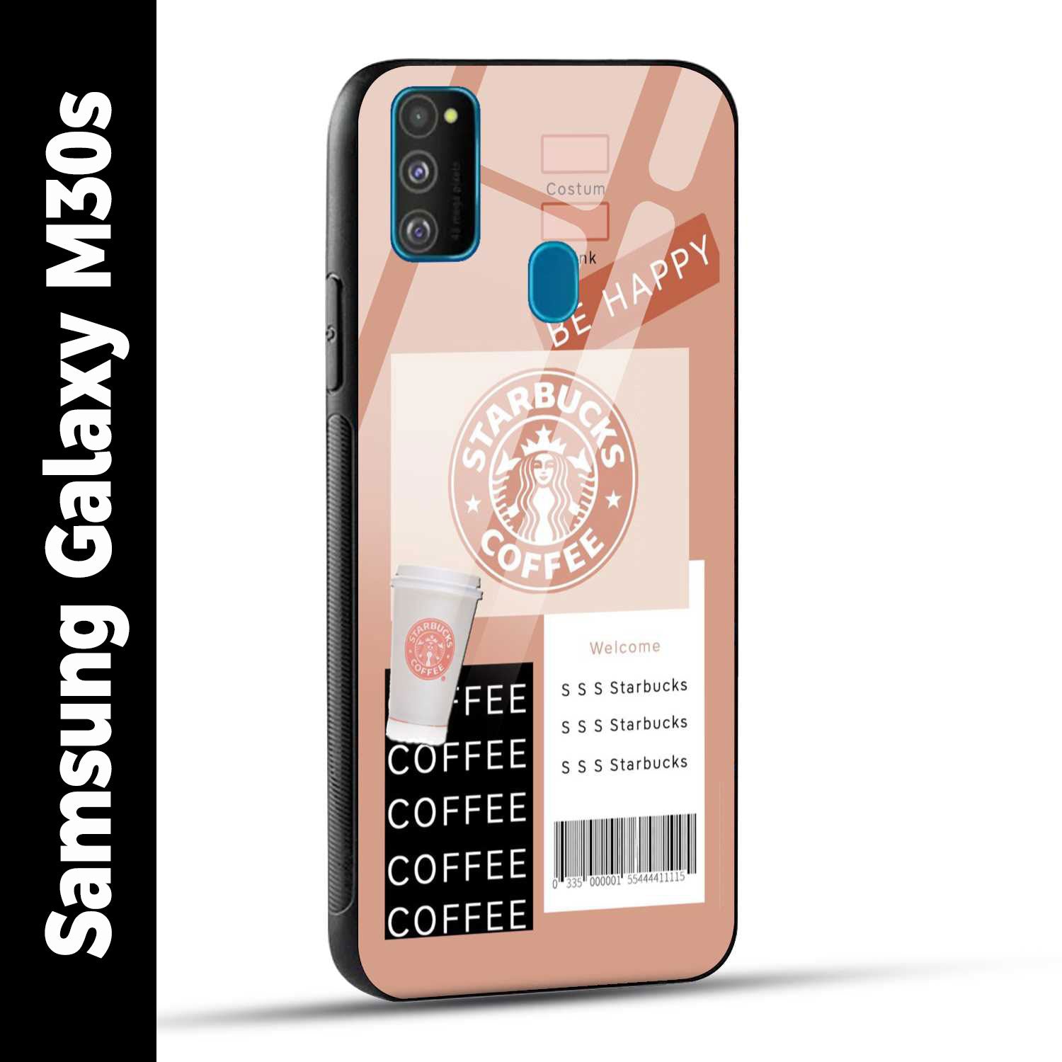 Samsung Galaxy M30s Back Cover Starbucks Coffee Happy Printed Glass Case