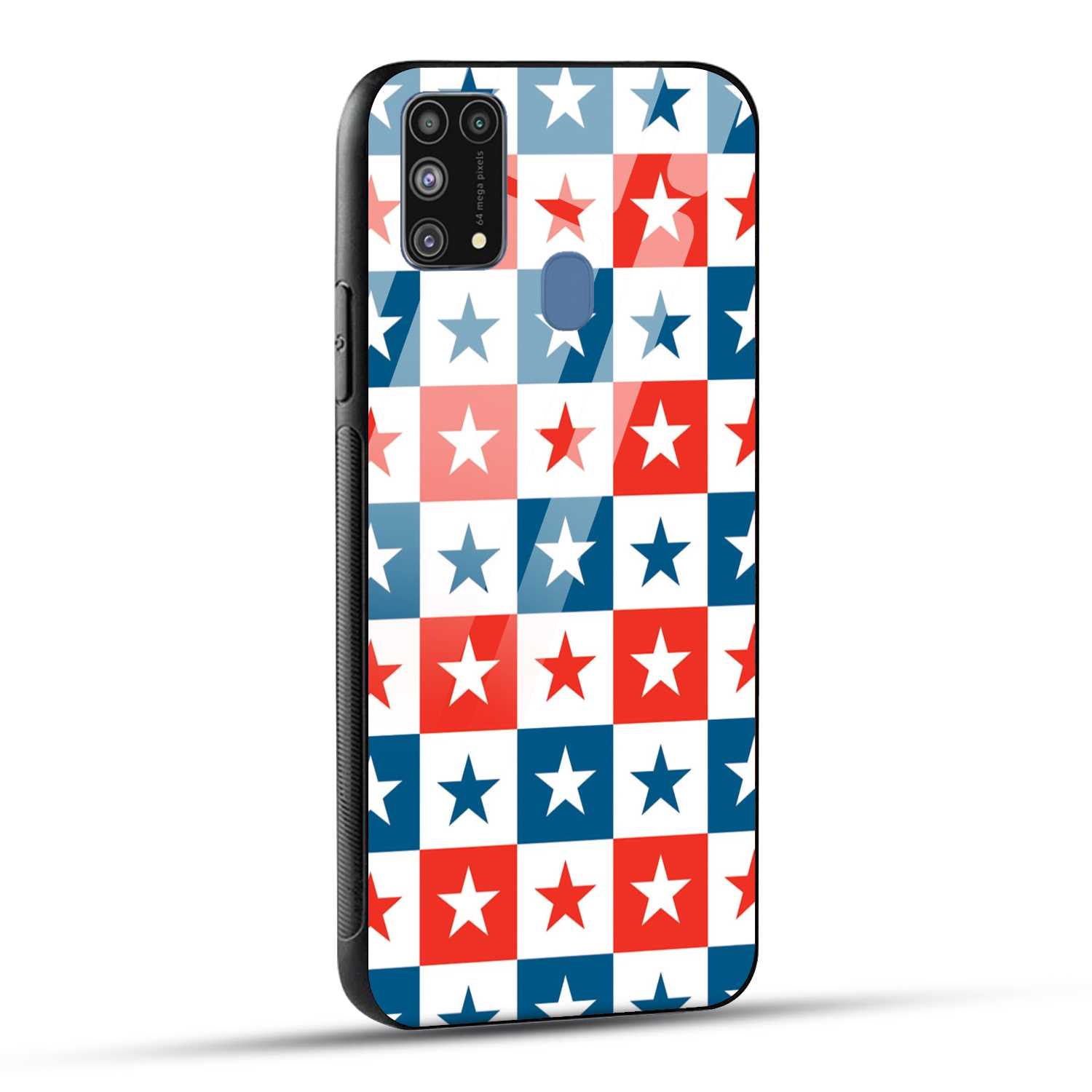 Samsung Galaxy M31 / Samsung Galaxy F41 / Samsung Galaxy M31 Prime Back Cover Blue And Red Star Print Printed Glass Case