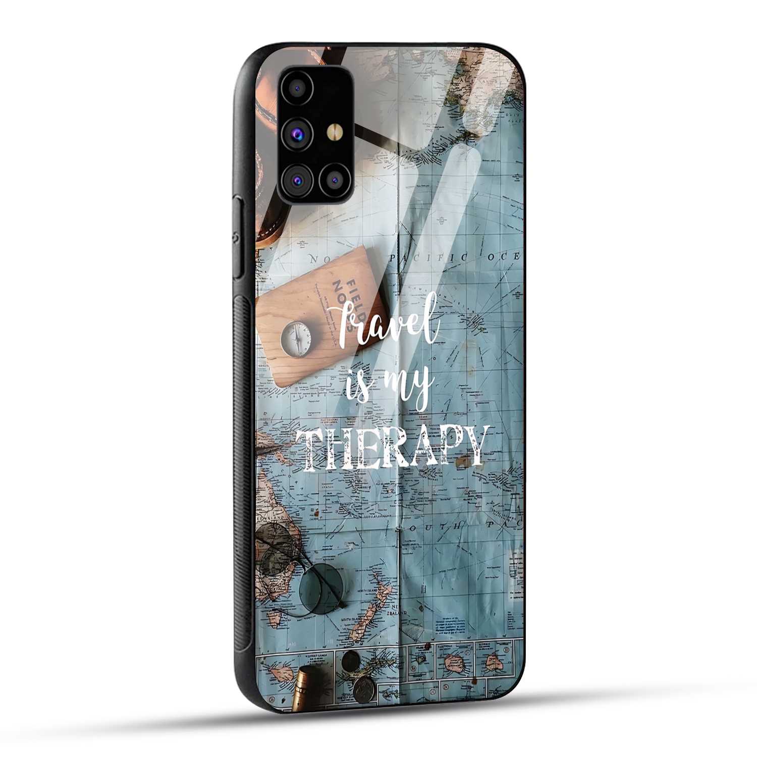 Samsung Galaxy M31s Back Cover Travel Is My Therapy Printed Glass Case