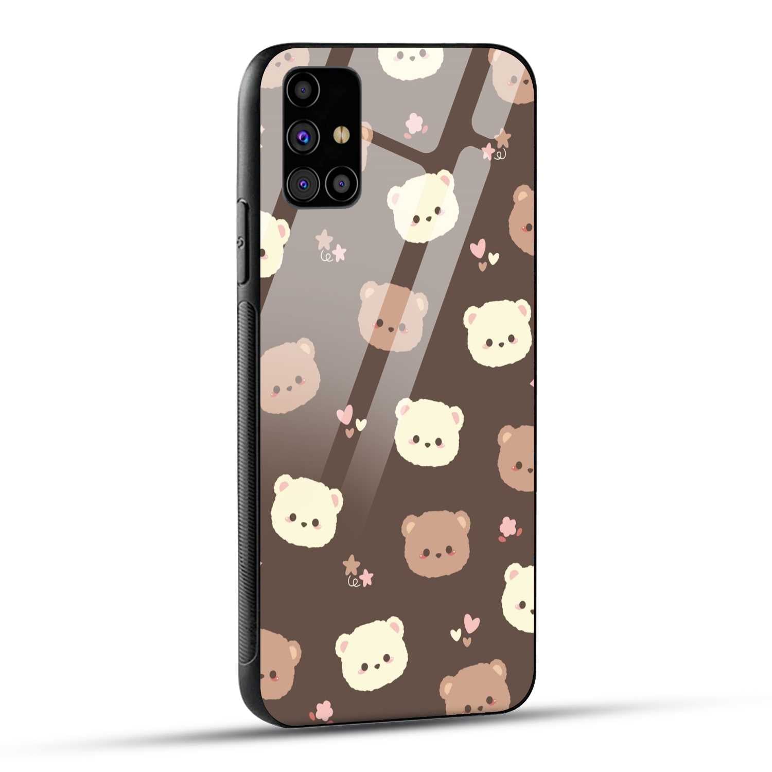 Samsung Galaxy M31s Back Cover Brown Illustration Cute Bear Pattern Printed Glass Case