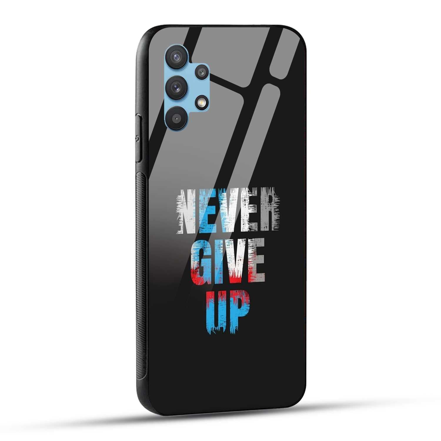 Samsung Galaxy M32 5G Back Cover Never Give Up Quote Printed Glass Case