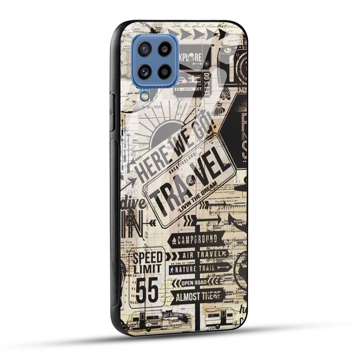 Samsung Galaxy M32 Back Cover Here We Go Travel Printed Glass Case