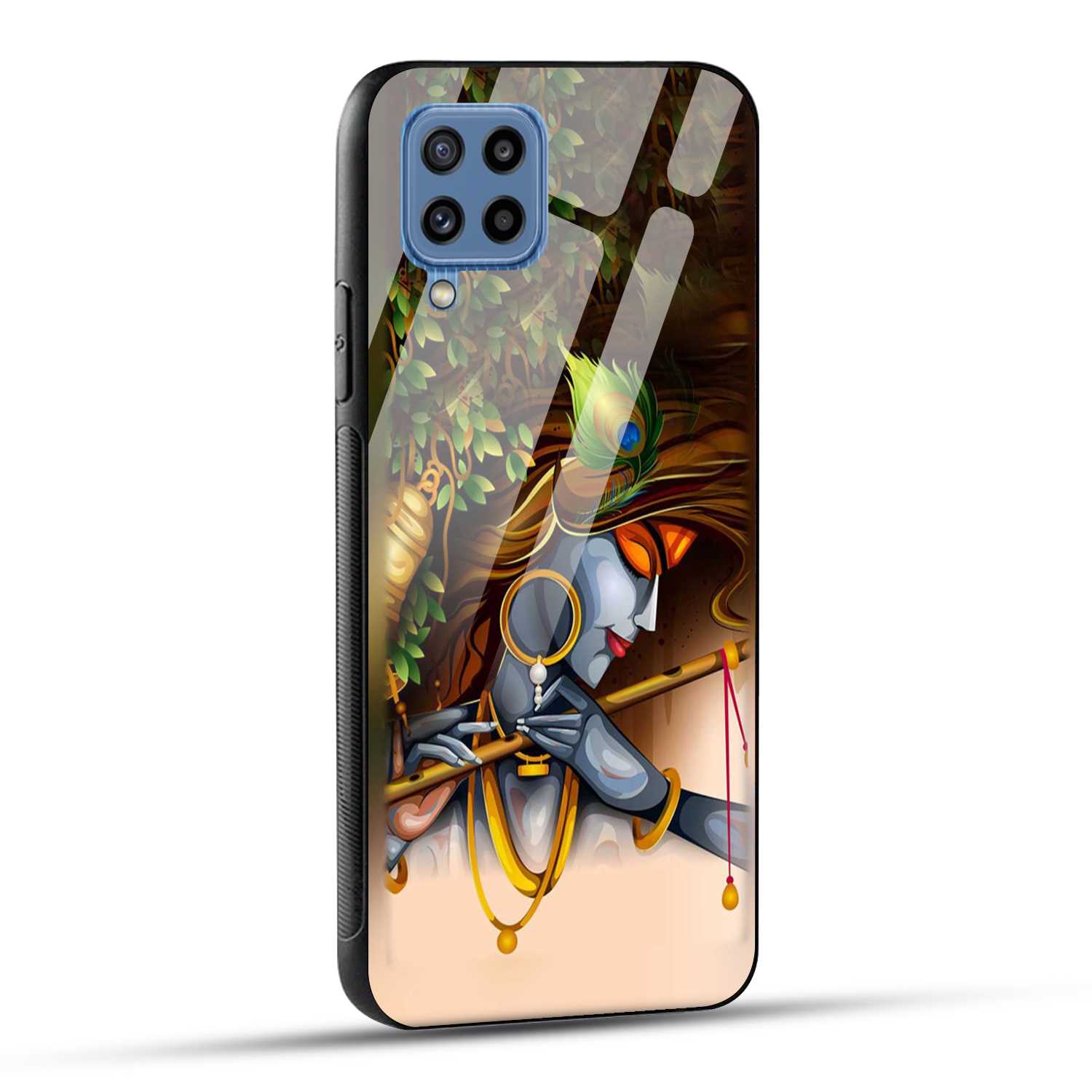 Samsung Galaxy M32 / Samsung Galaxy F22 Back Cover Lord Krishna with Flute Printed Glass Case