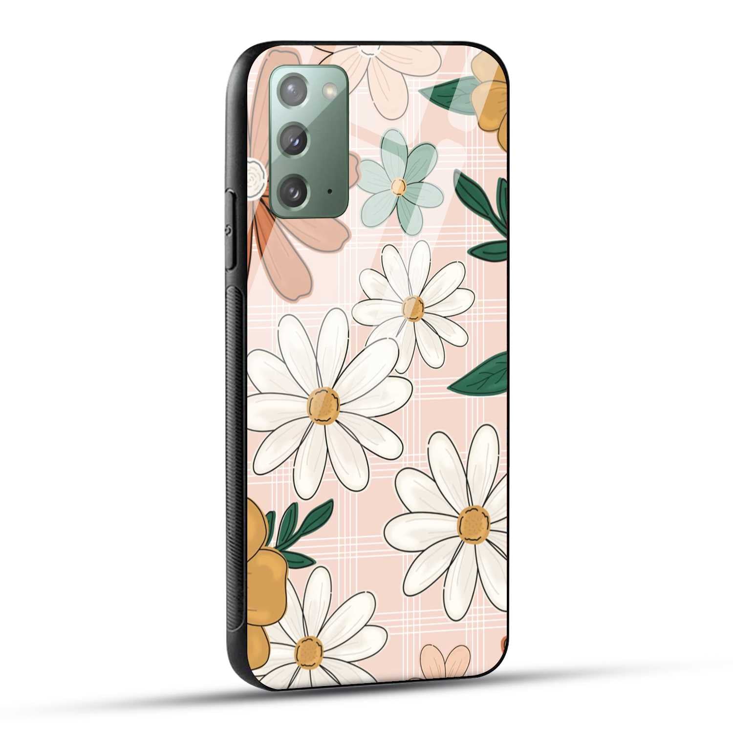 Samsung Galaxy Note 20 Back Cover Retro Flower Art Printed Glass Case