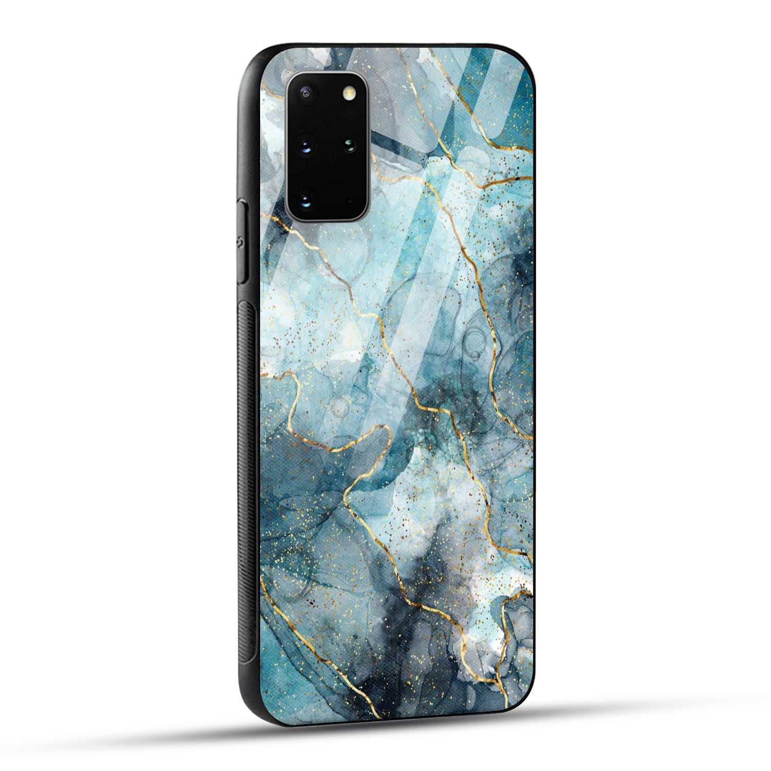 Samsung Galaxy S20 Plus Back Cover Blue Gold Illustrated Marble Printed Glass Case
