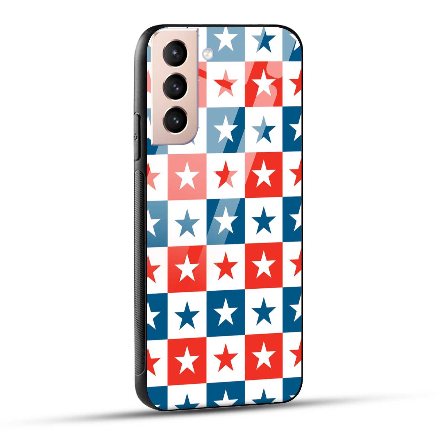 Samsung Galaxy S21 5G Back Cover Blue And Red Star Print Printed Glass Case