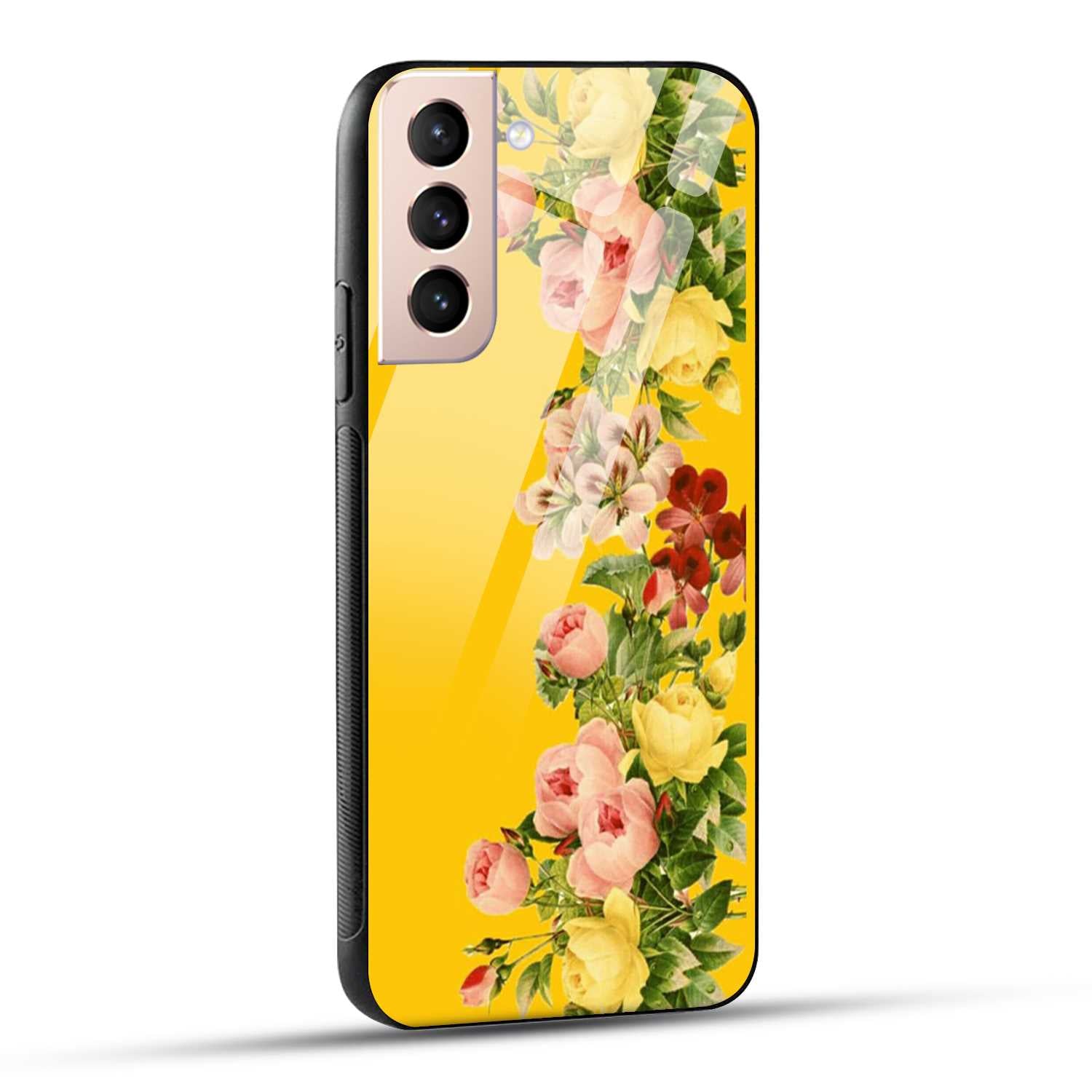 Samsung Galaxy S21 5G Back Cover Yellow Flowers Printed Glass Case
