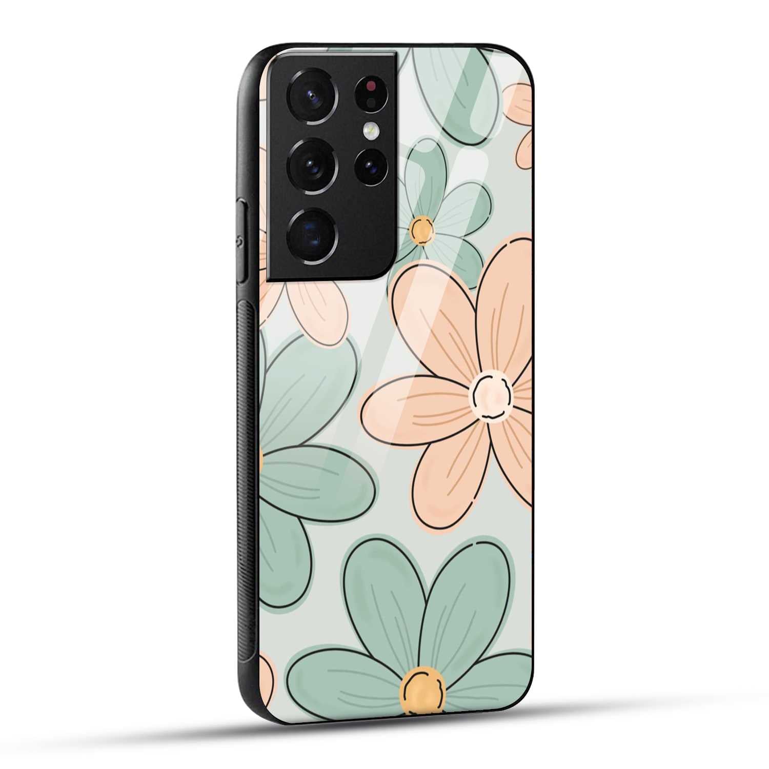 Samsung Galaxy S21 Ultra 5G Back Cover Aesthetic Flower Printed Glass Case