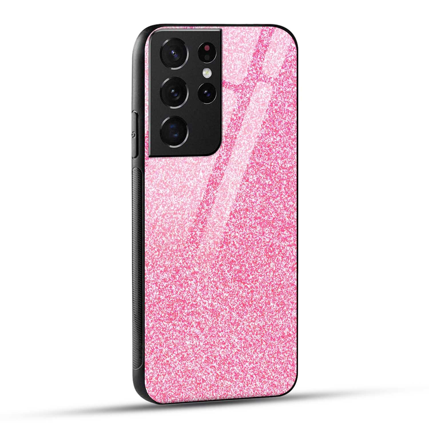 Samsung Galaxy S21 Ultra 5G Back Cover Pink Glitter Printed Glass Case