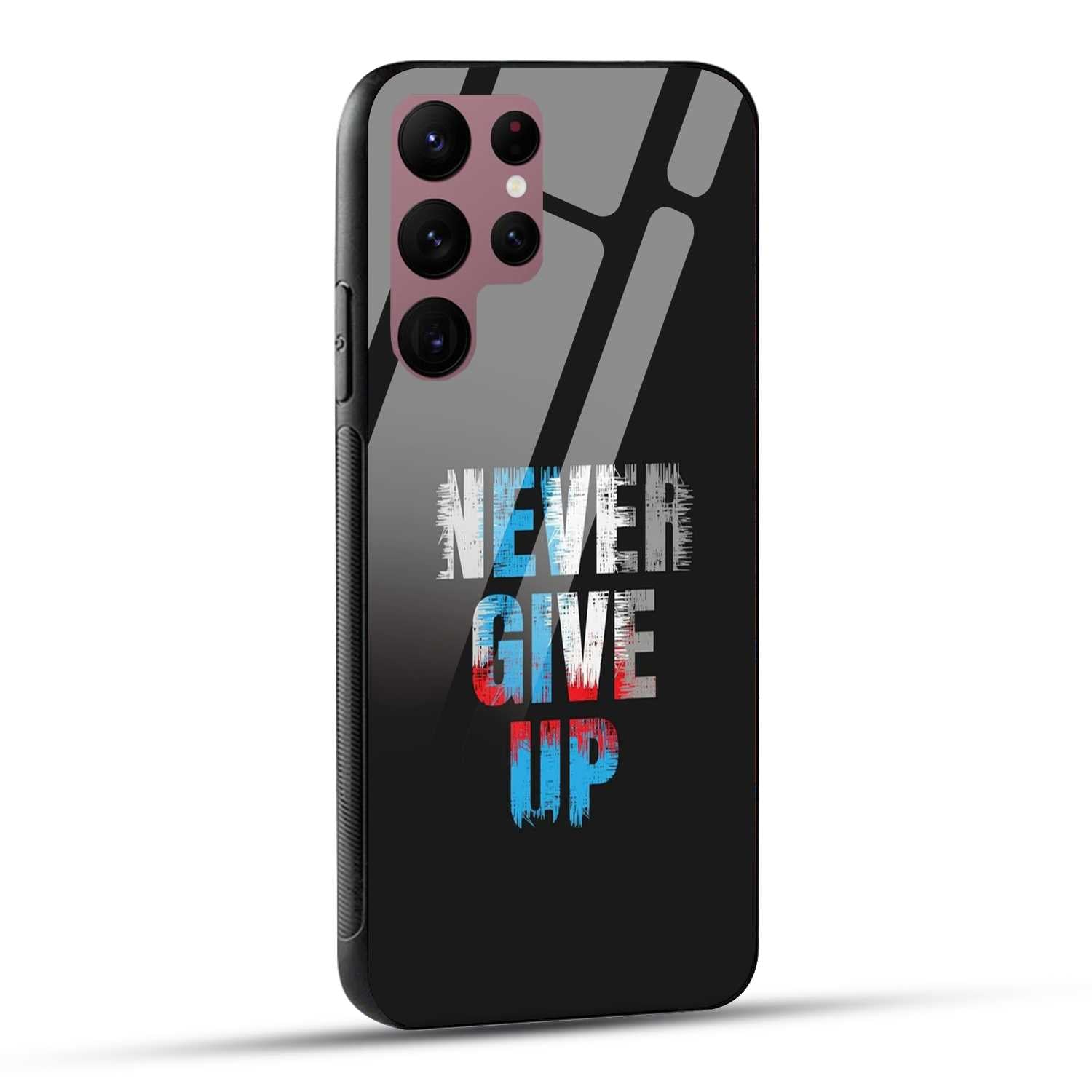 Samsung Galaxy S22 Ultra 5G Back Cover Never Give Up Quote Printed Glass Case