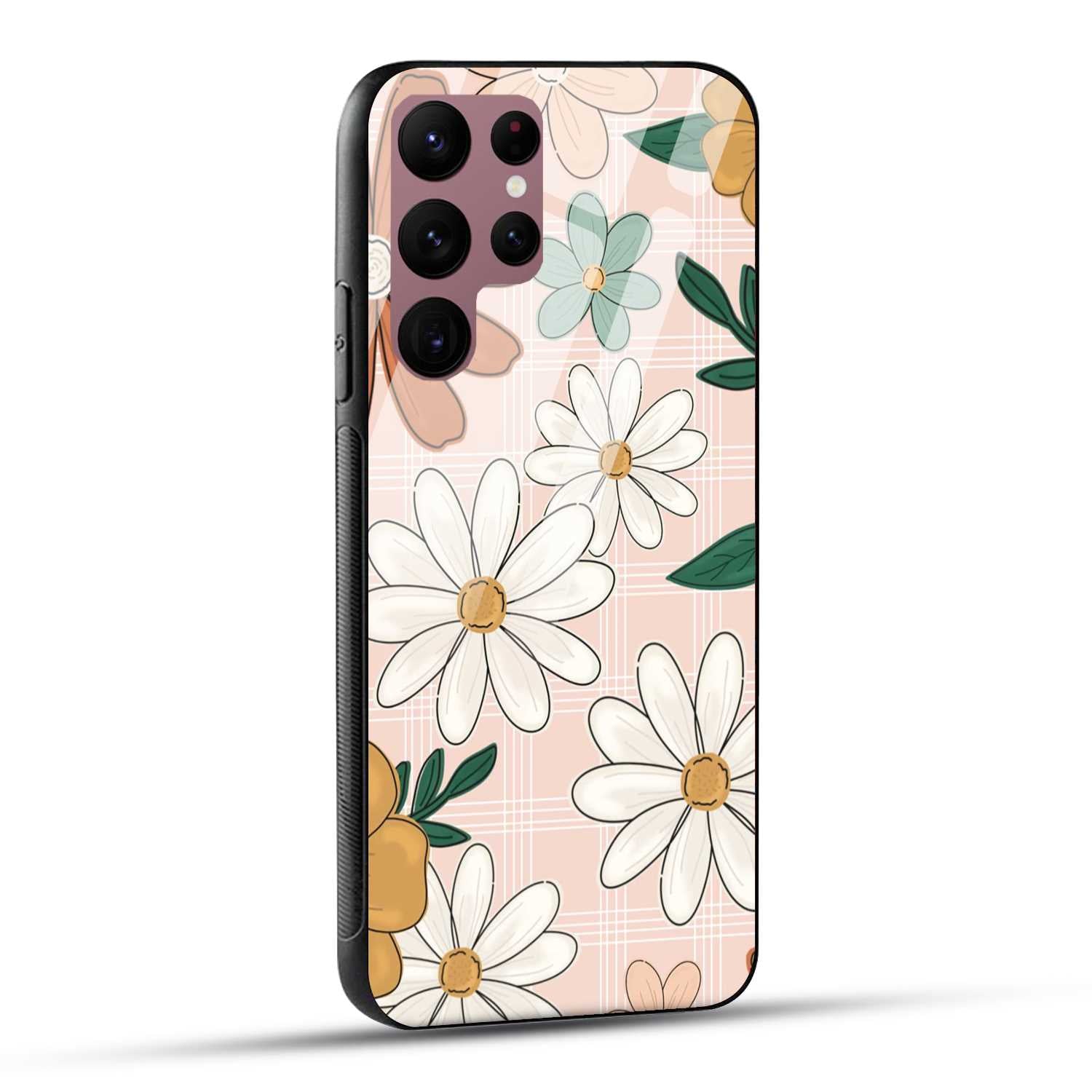 Samsung Galaxy S22 Ultra 5G Back Cover Retro Flower Art Printed Glass Case