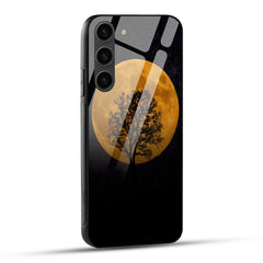 Samsung Galaxy S23 5G Back Cover Black And Orange Modern Moon Printed Glass Case