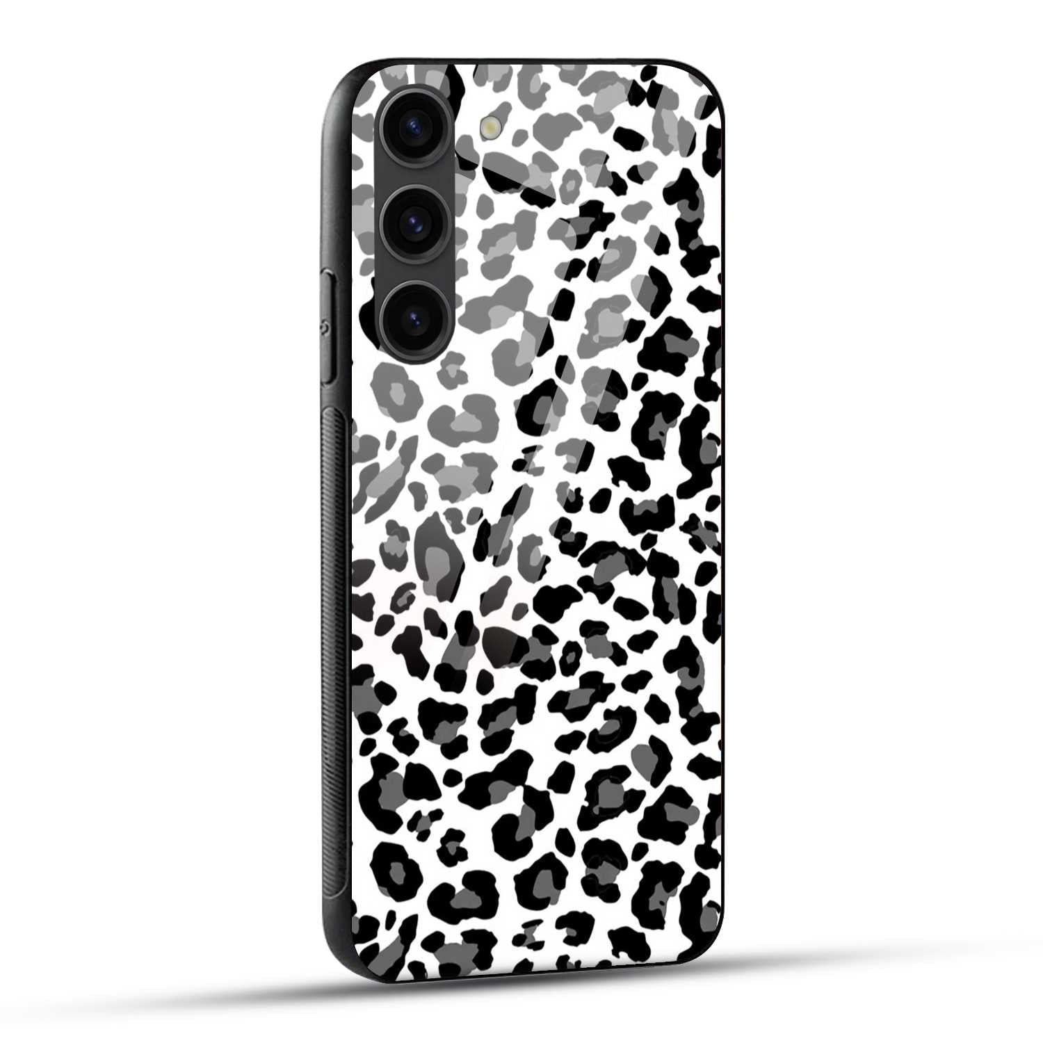 Samsung Galaxy S23 5G Back Cover Black And White Leopard Printed Glass Case
