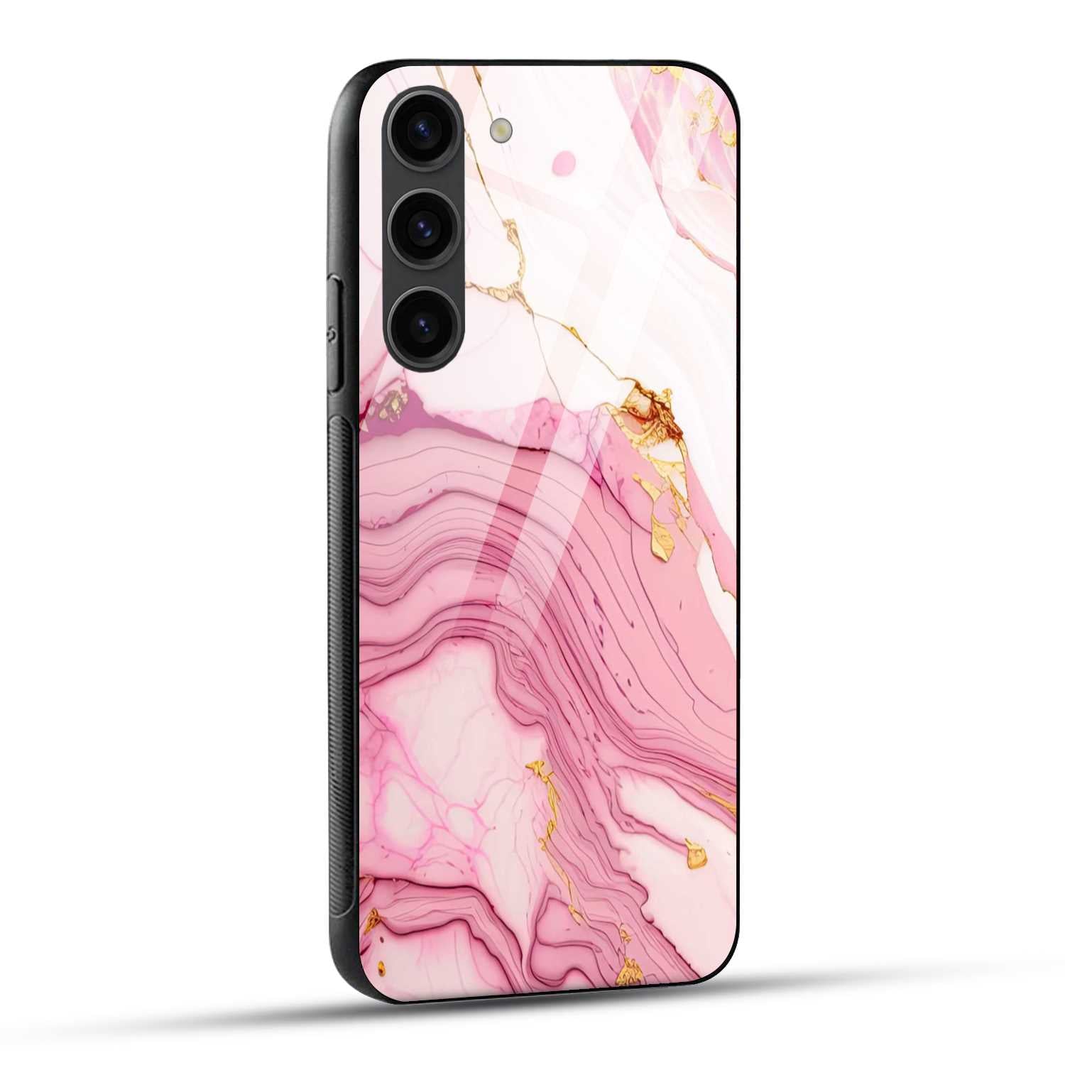 Samsung Galaxy S23 5G Back Cover Pink White Marble Printed Glass Case