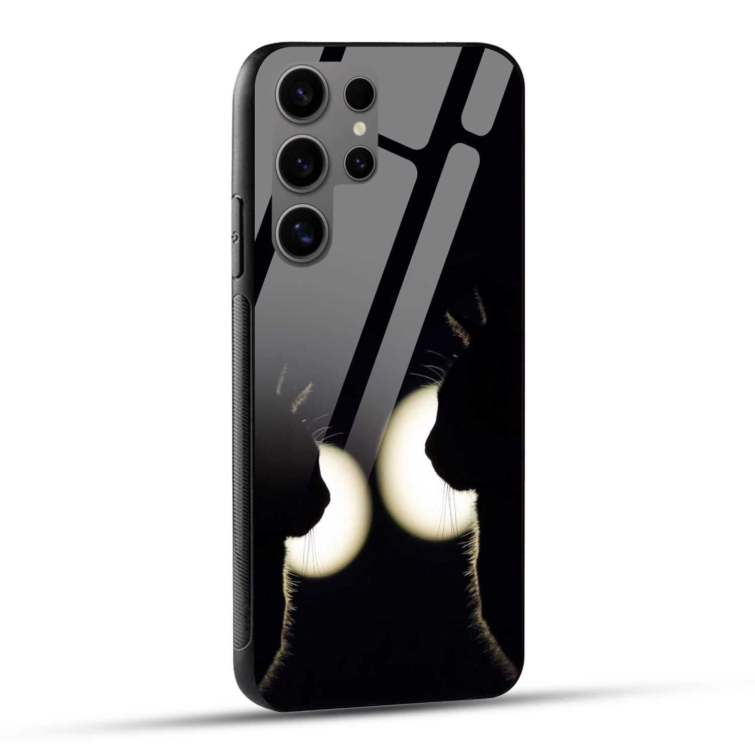 Samsung Galaxy S24 Ultra 5G Back Cover Black Aesthetic Cat Friendship Printed Glass Case