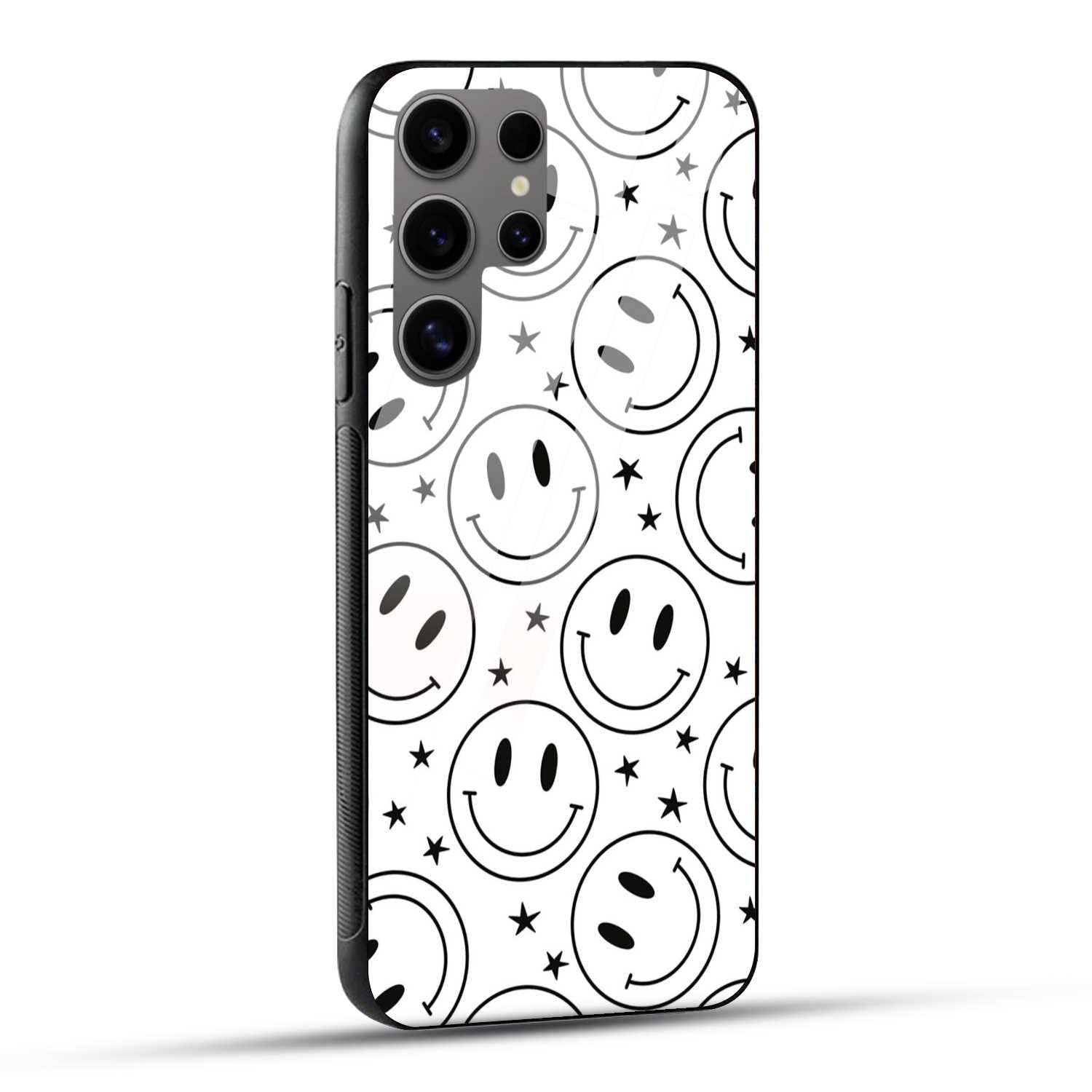 Samsung Galaxy S24 Ultra 5G Back Cover Doodle Of Smiley Black And White Printed Glass Case