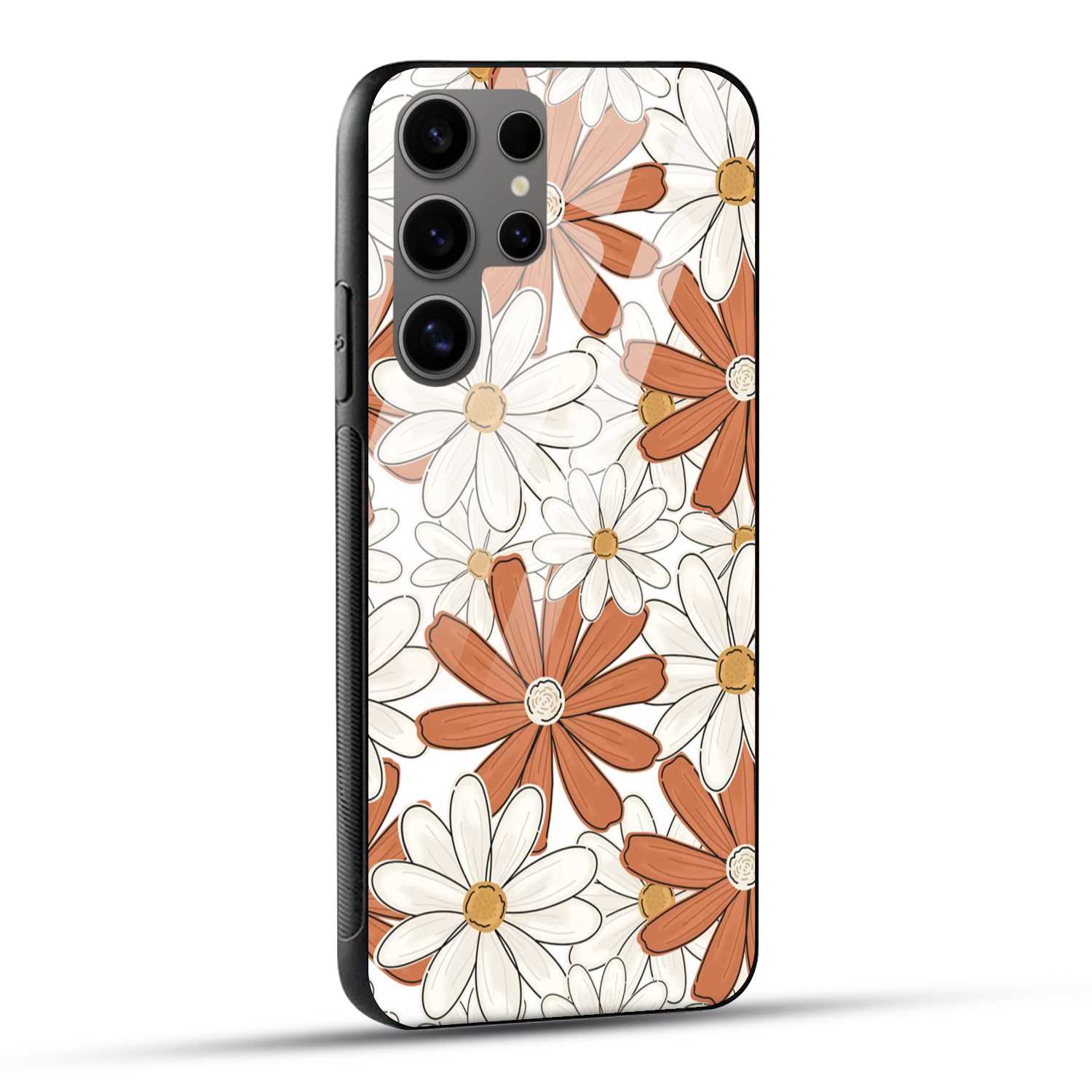 Samsung Galaxy S24 Ultra 5G Back Cover Retro Flower Doodle Art Printed Glass Case
