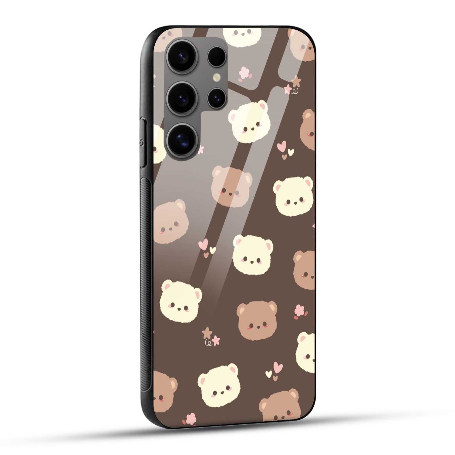 Samsung Galaxy S24 Ultra 5G Back Cover Brown Illustration Cute Bear Pattern Printed Glass Case