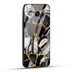 Samsung Galaxy S7 Edge Back Cover Black Marble Glass Case